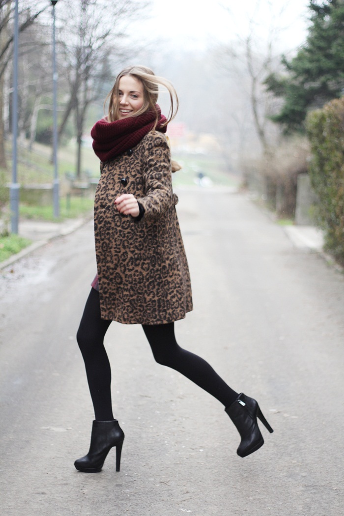 I paired my old plaid skirt with leopard coat, vintage belt and oversized sweater.